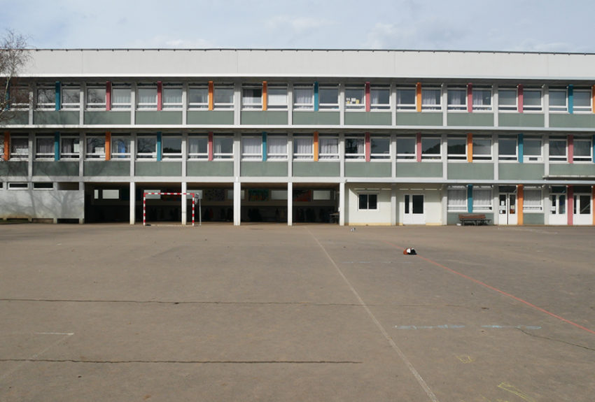La nouvelle cour est transformée pour diversifier les manières de jouer et de se déplacer dans un espace structuré par des ilots plantés inaccessibles. L’espace central, vaste surface bitumée monopolisée par un terrain de football, est partiellement dé bitumé pour devenir un terrain d’exploration : cabanes, parcours d’équilibre, classes dehors, rigole où l’eau de pluie est mise en scène à hauteur d’enfant. Les massifs plantés par thématiques géographiques et les carrés potagers sont des supports pour les équipes pédagogiques afin d’observer, semer, jardiner...